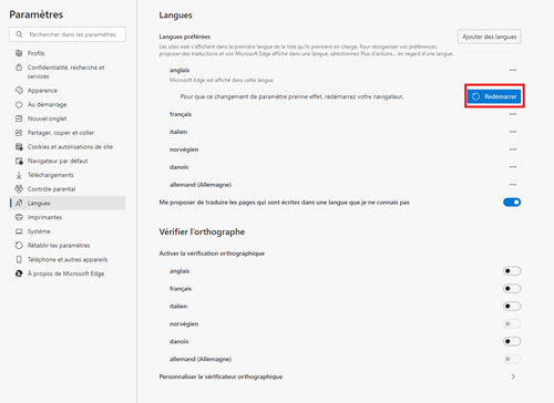 1) Copiez et collez cette url dans votre navigateur: edge://settings/languages