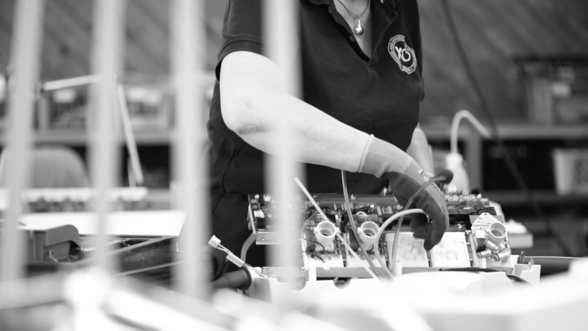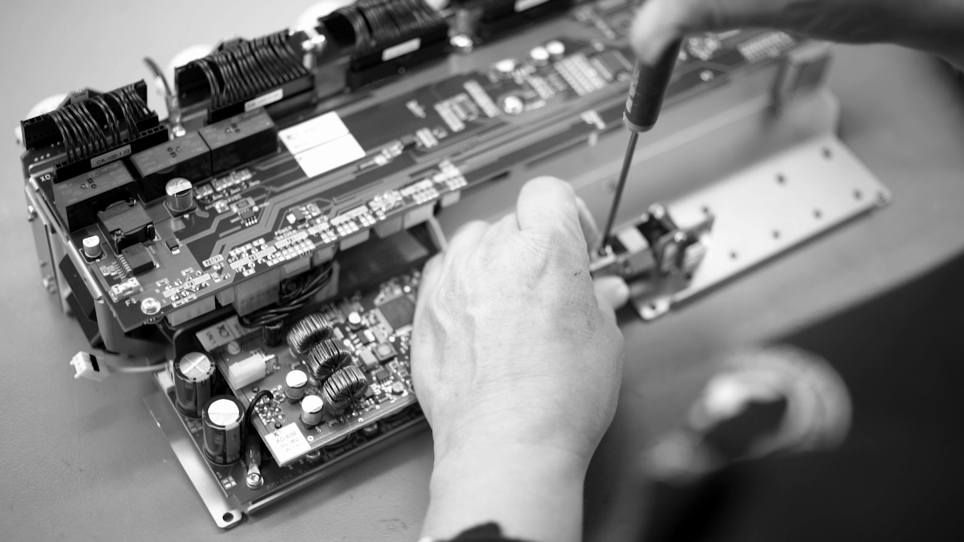 Elements of the instrument bridge, e.g. circuit boards, are put together and tested before they are mounted on the unit.