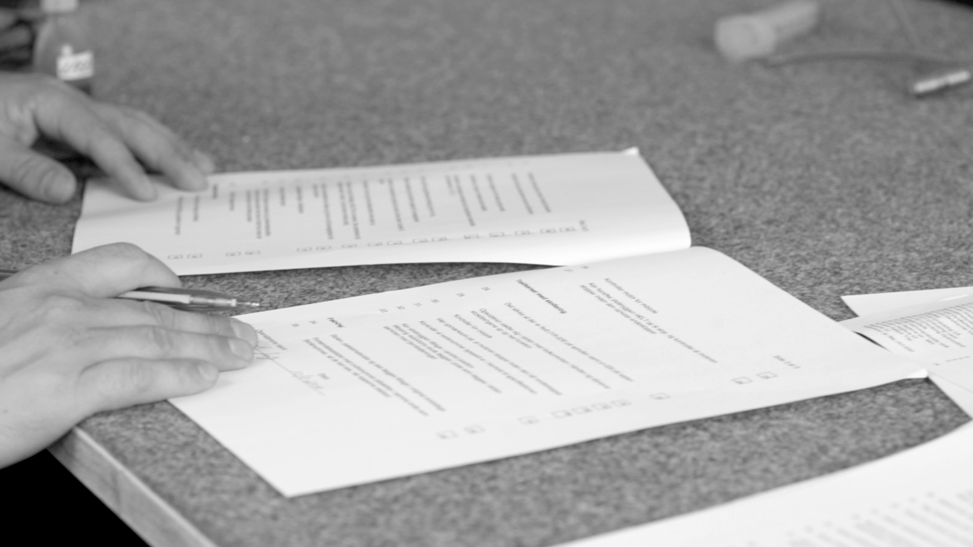 Small parts and elements are manually assembled and prepared for installation.