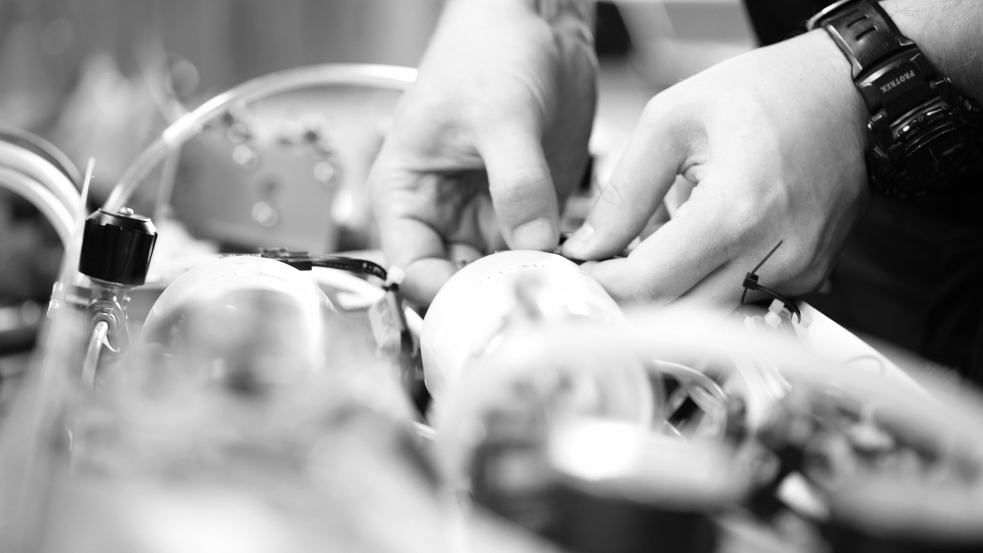 The unit stand is manually assembled, together with all the tubing and electronic parts inside. It takes around 2-3 hours to prepare one unit stand.