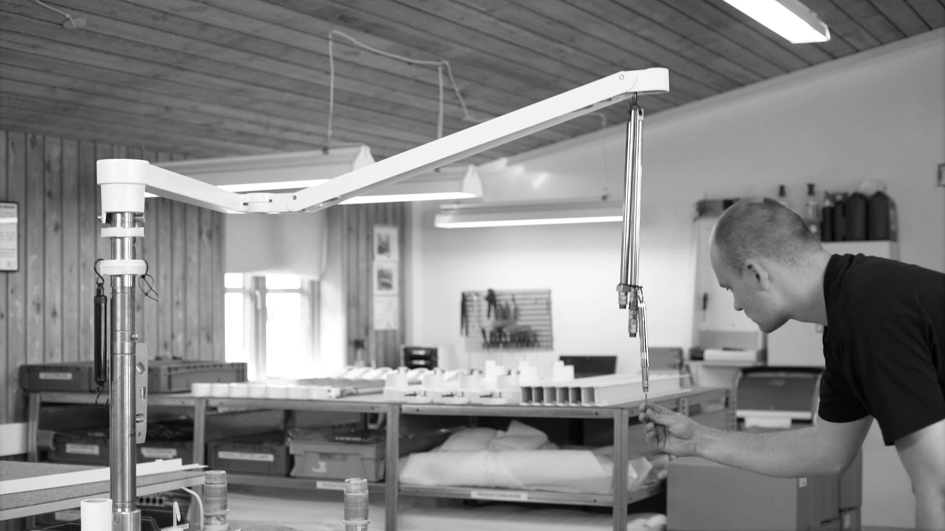 All the arms in the unit will be weighted, balanced and tested. The LED lamp must also be tested so that it gives a clear and powerful light without distortion or color aberrations.